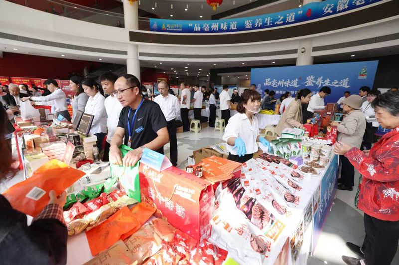 观众选购美食、花茶、药妆、艾灸养生锤等特色产品。亳州地处安徽西北部,有着“中华药都”的美誉。