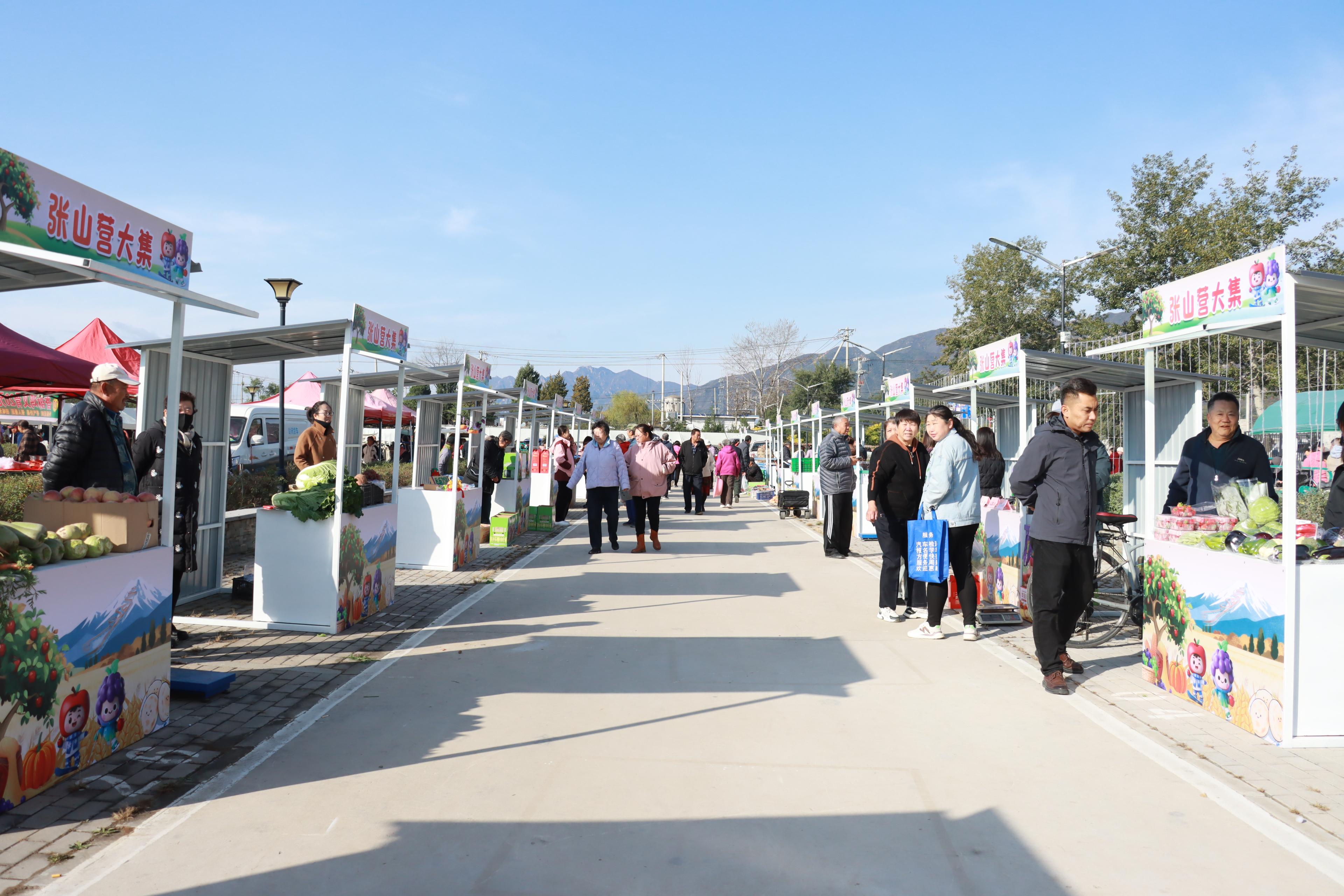 10月18日,重装升级的延庆区张山营大集热闹开集。洁白统一的摊位帐篷、整齐划一的集市展台、造型各异的特色餐车,让整个大集“颜值”大幅提升,营造了舒适、便捷的购物环境。
