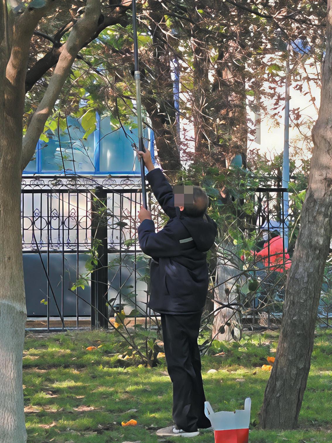 有人自制长杆、网兜“暴力”摘柿子