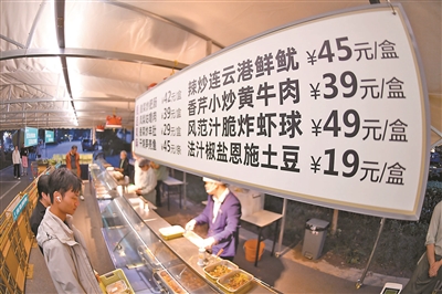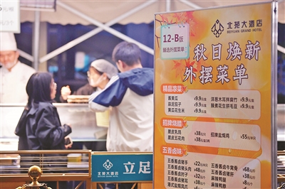 位于望京的昆泰嘉晟酒店,更是承包了周边白领们的“一日三餐”:早餐时段,手工包子、热豆浆可随手带走;午餐推出无预制菜工作套餐;晚餐则摆上热卤、小吃。只见现场厨师娴熟分装各种饭菜,服务员热情地向顾客们介绍商品、解答疑问,让这种“星级摆摊”多了份温馨。“五星级酒店出品,吃着放心,下班回家也不用开火了,多好!”白领张女士边选购凉菜边说道。