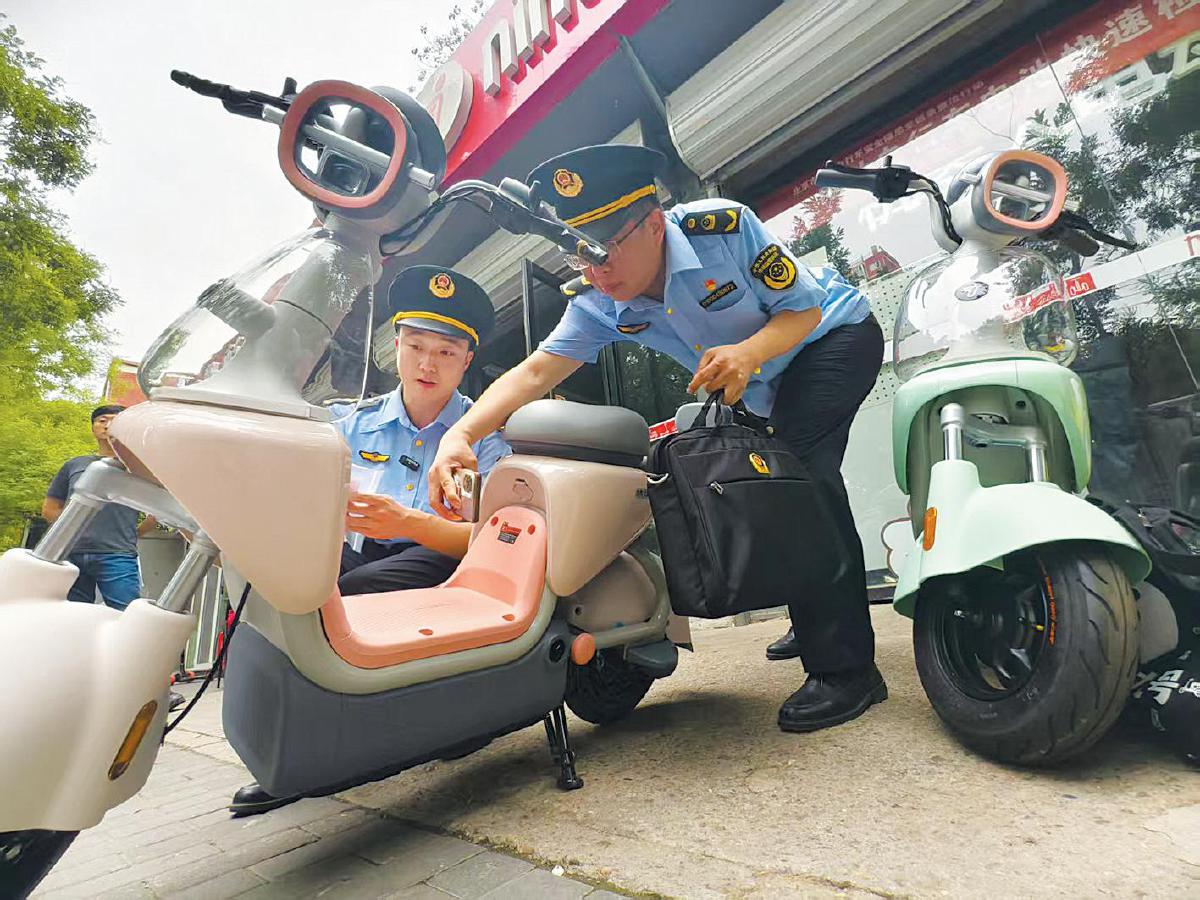 8月26日,海淀区市场监管局对辖区内一家电动自行车销售门店开展专项执法检查。新京报记者 浦峰 摄