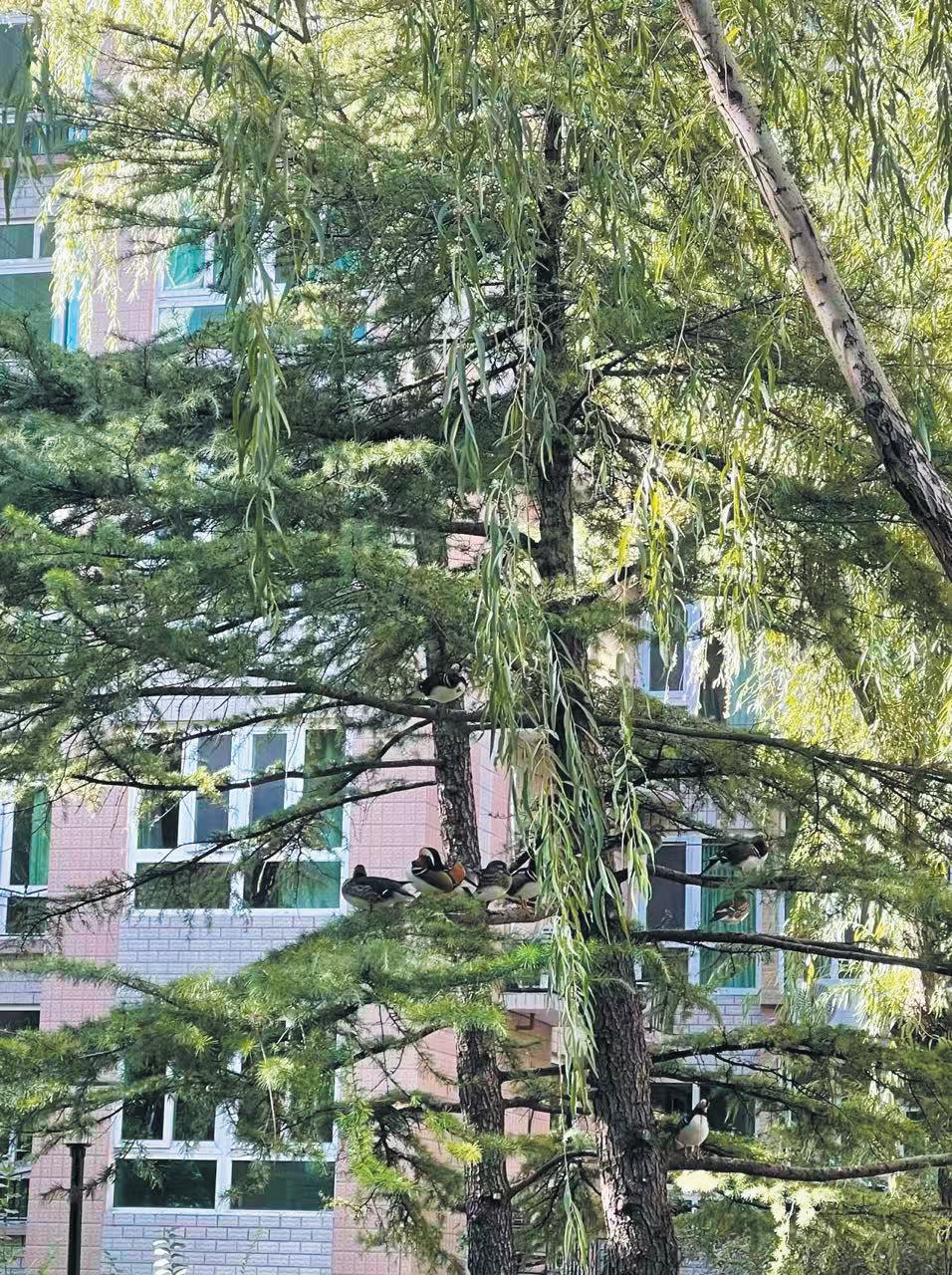 鸳鸯在小区树上栖息。 市民钱女士供图