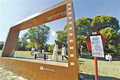 “相框设置的位置很棒,就像是替你找好了最美秋日风光的空镜头,随便一站,就很出片!”90后女生葛婷和闺蜜在地坛公园遛弯时发现了相框和长椅,俩人觉得特别惊喜,相约按照地图挨个去打卡。“很符合公园20分钟效应,看着公园里的风景和长椅上的短句,感觉焦虑和压力都得到了缓解,像是经历了一场‘自然疗愈’。”