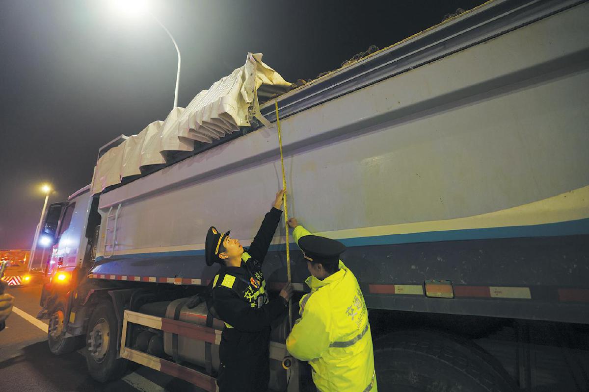 记者了解到,为巩固道路遗撒整治成效,持续优化道路通行安全环境,北京市交通运输综合执法总队自10月20日起至年底,每周至少开展两次全市性常态化夜查。夜查围绕五环路、高速公路、郊区重点公路及城市副中心周边道路等重点区域展开,北京市交通运输综合执法总队联合公安交管、城管执法、区交通执法等部门,聚焦道路遗撒与“百吨王”问题,持续对道路货运领域保持高压严管态势。