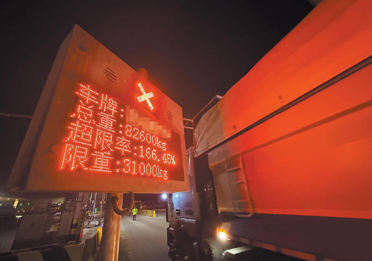 10月28日,白庙收费站,一辆违法大货车称重后显示超载率已达166.45%。