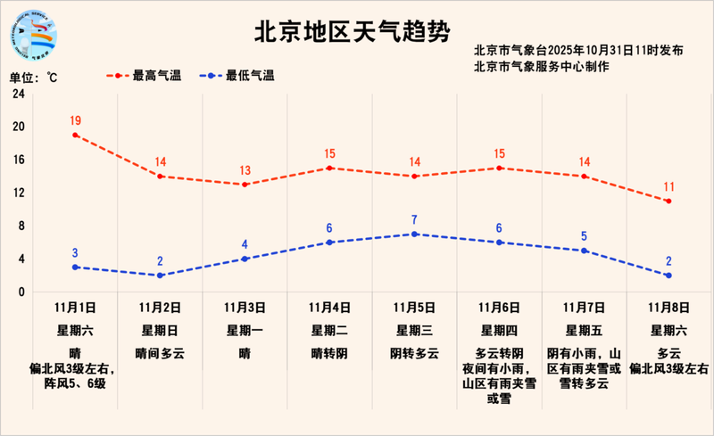 新京报讯 据“气象北京”微信公众号消息,今天(31日)上午北京轻雾笼罩。受冷空气影响,午后能见度逐渐转好,夜间彻底转好,天空也重回晴朗。午后北风增强,有二三间四级偏北风,最高气温16℃,有一定风寒效应。