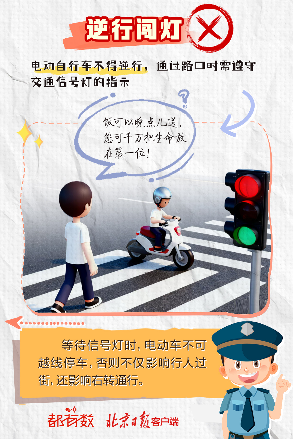 北京市“电子眼”近日开始对电动自行车违法行为进行抓拍,截至目前,全市213处执法设备已试点审核录入违法行为3.8万起。电动自行车此前长期处于交通执法的灰色地带,很多市民甚至不清楚骑电动车上路应该遵守哪些规则。哪些违法行为将被拍?收好这份指南!