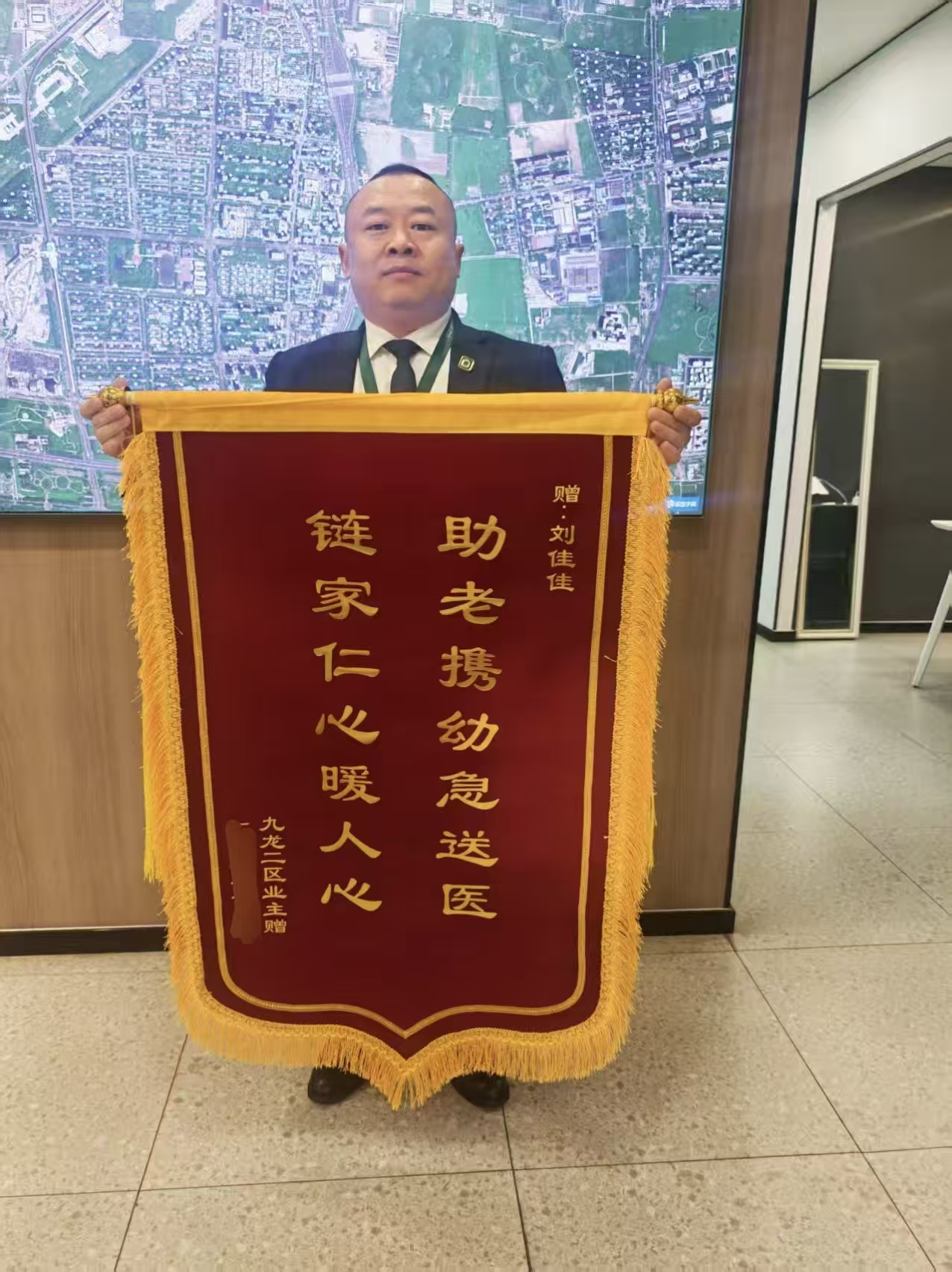 近日,市民许女士一家专程来到链家理想城礼域府店,将一面写有“助老携幼急送医,链家仁心暖人心”的锦旗送到经纪人刘佳佳手中。原来,前几天许女士5岁的女儿突发高烧陷入昏迷,是刘佳佳及时护送孩子去了医院,令许女士一家人非常感动。