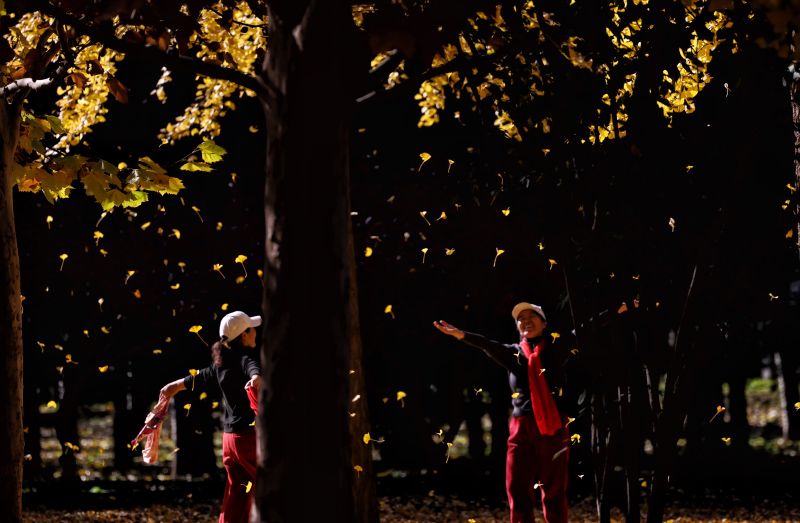 来源标题:京城寻秋 | 银杏叶织金毯,古塔公园飘起“落叶雨”