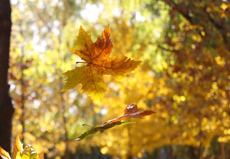 树叶漫天飞舞,织就一场浪漫的 “落叶雨”。