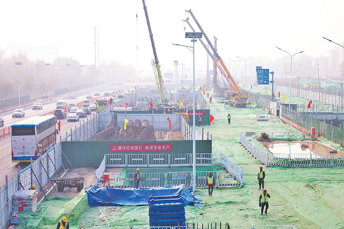 11月12日,安立路快速化改造工程7标段正在进行桩基施工。本版摄影/新京报记者 王贵彬(除署名外)