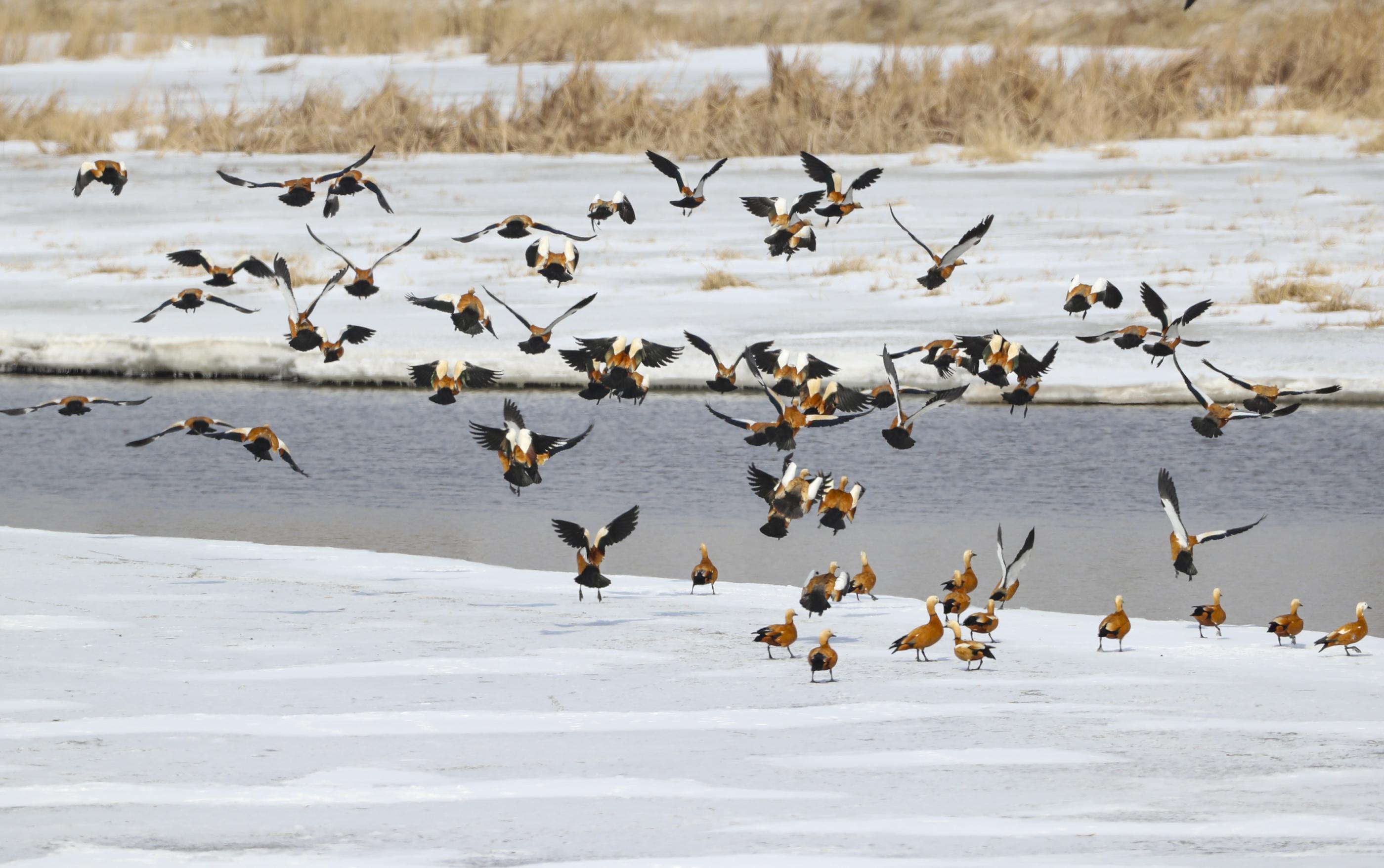 张家口的湿地迎来许多迁徙候鸟停留。受访者供图