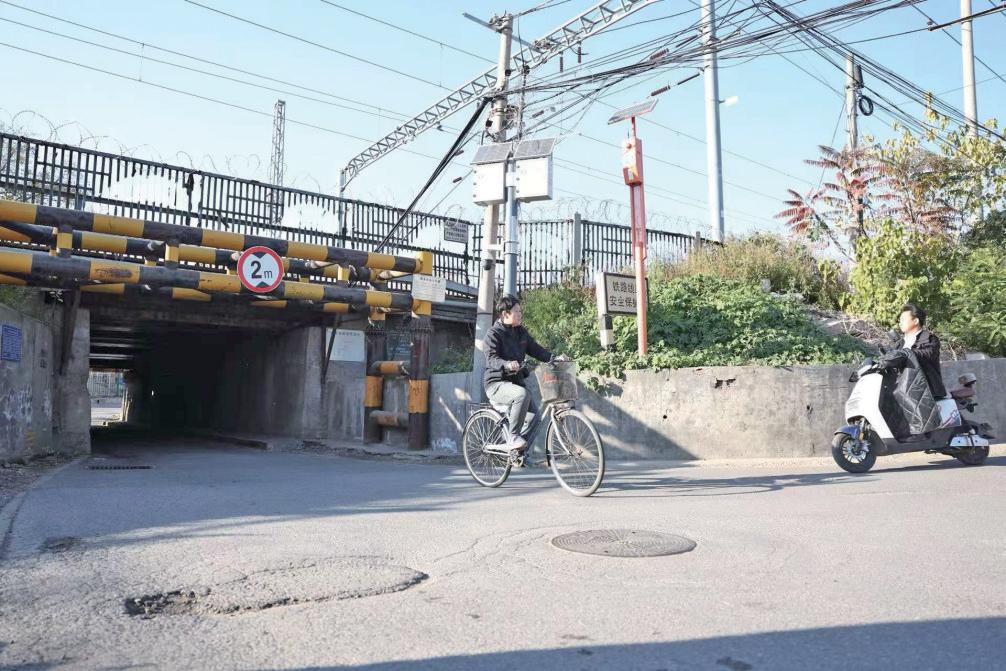 11月13日,长辛店大街附近的铁道桥桥洞,人车混行。