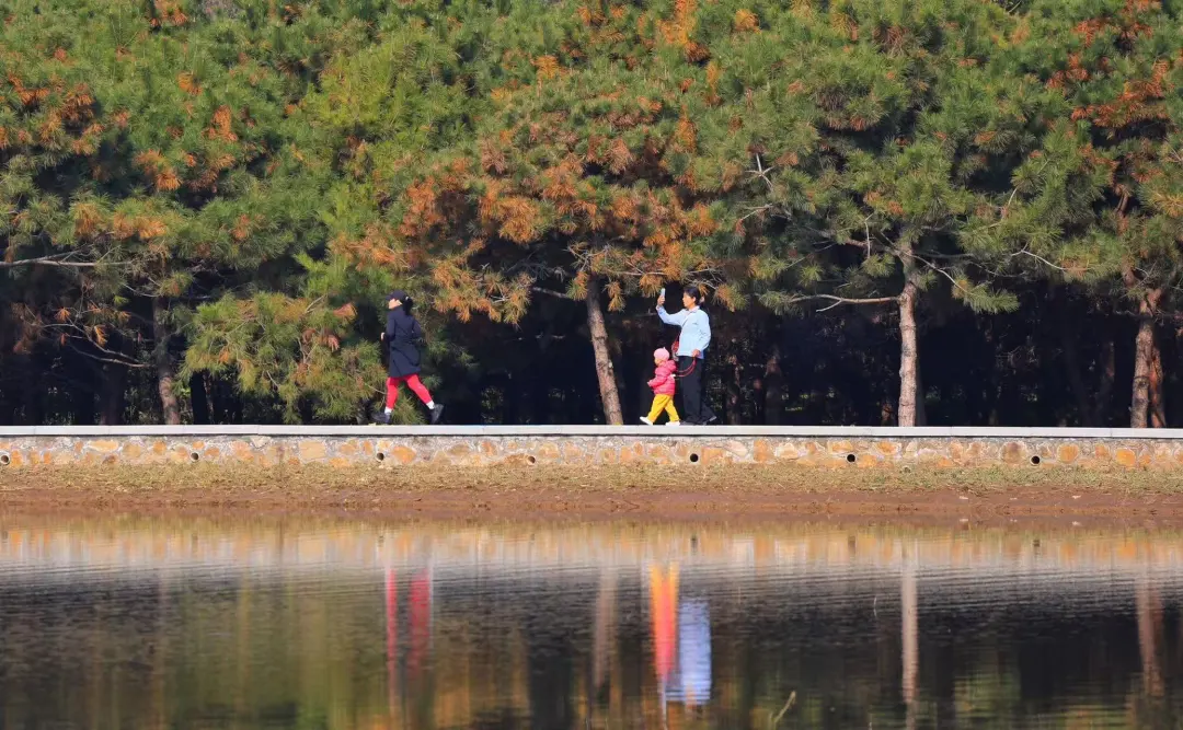 “既要能扛住洪水,也要装得下生活。”中国城市规划设计研究院风景分院设计所副所长舒斌龙介绍,坝河口蓄滞洪区兼具生态与安全,打造集安全、生态、休闲为一体的城市绿肺。核心的湖区水域达到42.5公顷,可以作为防洪调蓄的容器,沿河岸线新栽种了1.15万株彩叶树,同时保留自然生长的乡野树林,恢复鸟类等动物栖息地,形成浅滩、小岛等生境,让“鹭鸟成群、林木繁盛”成为一道亮丽的城市风景。市民湖边漫步、湖岸观鸟、湖上泛舟,更好地亲近自然、体验自然。