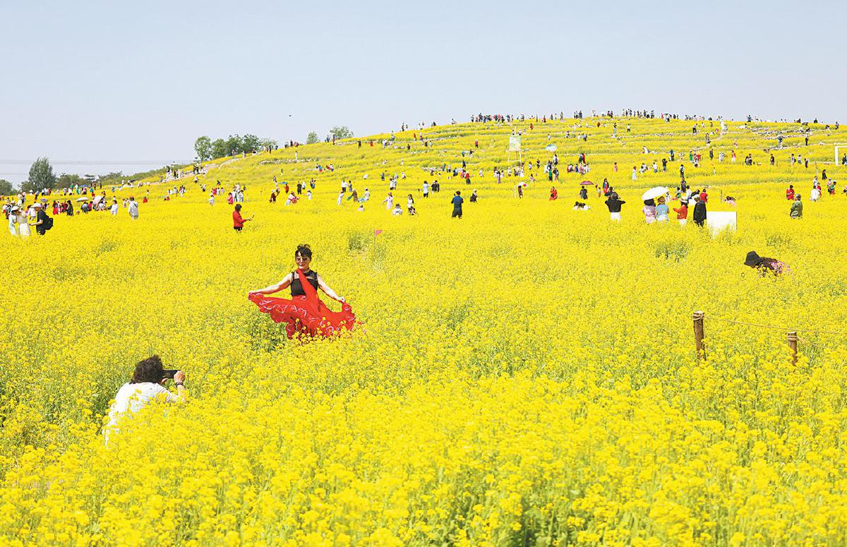 2024年5月3日,温榆河公园的“芸上梯田”景区吸引了大批游客前来观赏。 资料图片/新京报记者 王贵彬 摄