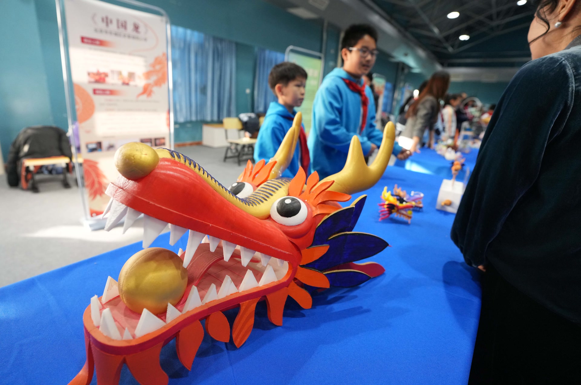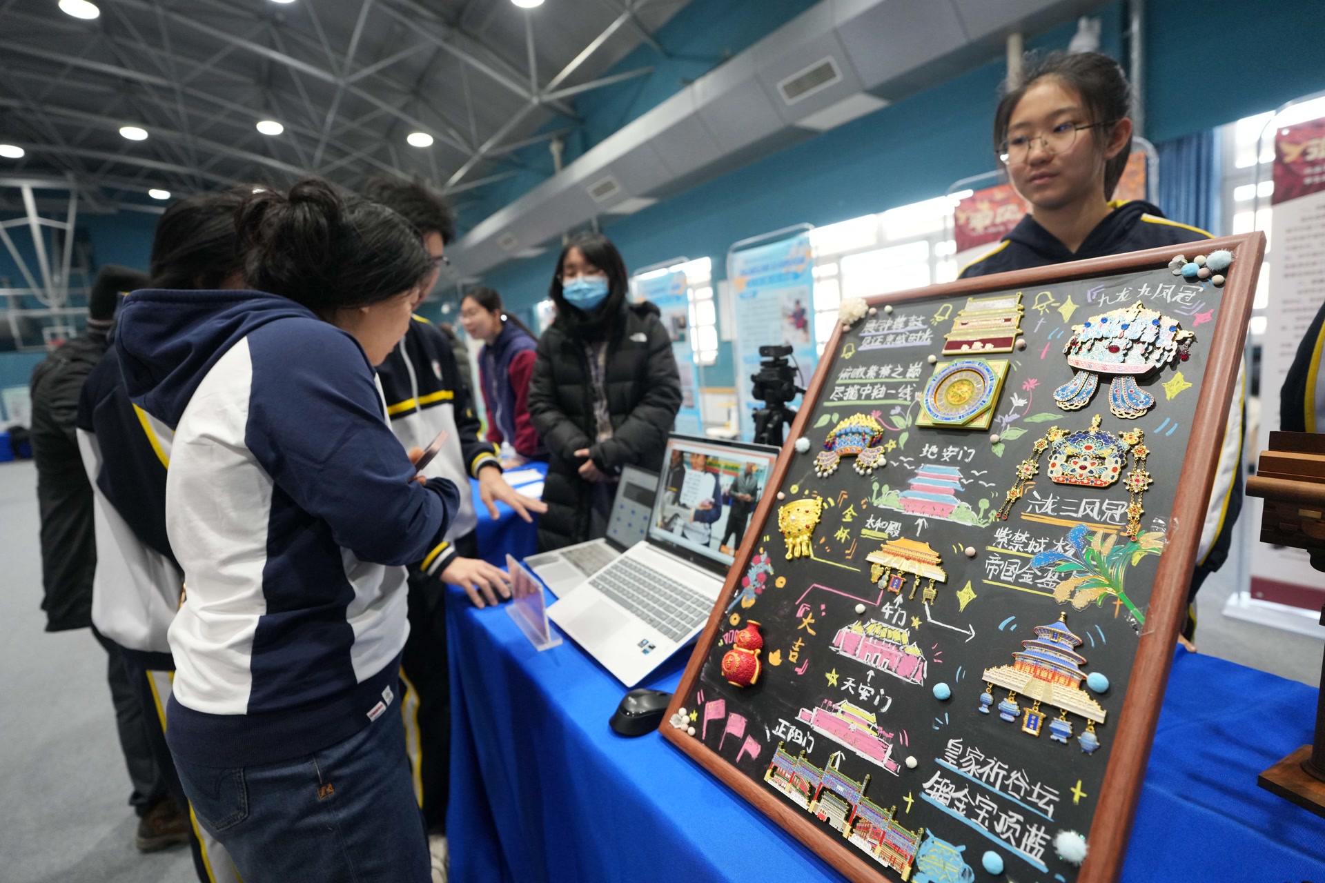 展示市集上,东城中小学生们从丰富的传统文化资源中汲取灵感,纷纷秀出自己的学习收获。