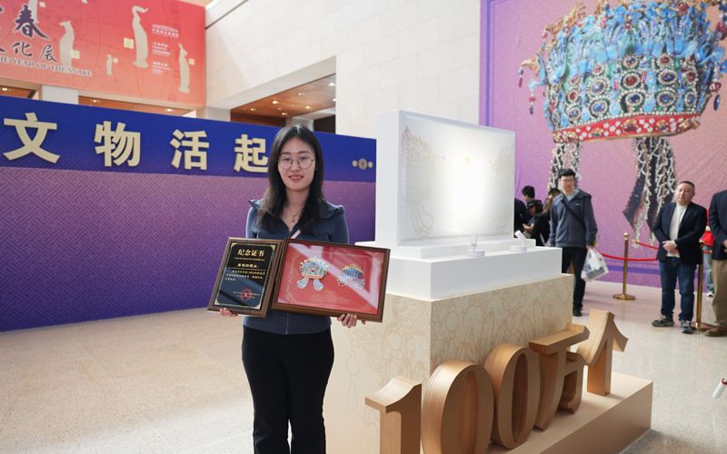2025年3月25日,中国国家博物馆,一名来自山东的女生成为第100万件凤冠冰箱贴的购买者。资料图片/新京报记者 浦峰 摄