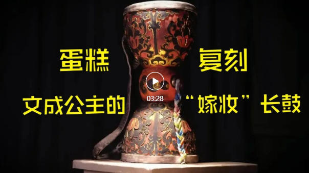 如今,这件文物更多了一层“甜味儿”,文物复刻甜品师邹明磊(@小邹邹)用立体蛋糕1:1复刻了这面长鼓。蛋糕的口味,融合了西藏人民颇为喜爱的青稞酒,更是别有一番滋味;在蛋糕制作工艺上,精确还原了鼓身上的宝相牡丹、云头纹和火焰纹,第一眼看简直是以假乱真的地步!这么精美的蛋糕谁会舍得吃呢~