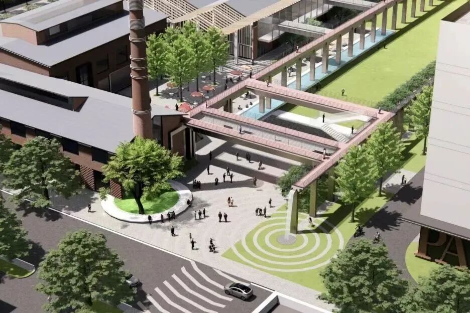 工业遗存将改造为城市记忆地标,与中央绿轴景观共同营造宜居宜业环境;