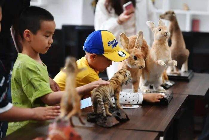 孩子们在国家自然博物馆参加“趣辨博物”亲子共学活动 摄影/北京青年报记者 袁艺