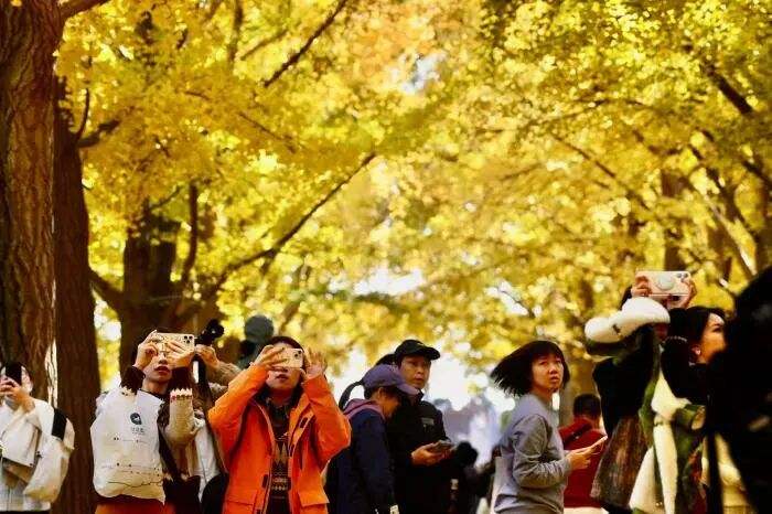 游客在地坛公园观赏秋色 摄影/北京青年报记者 付丁 杨益