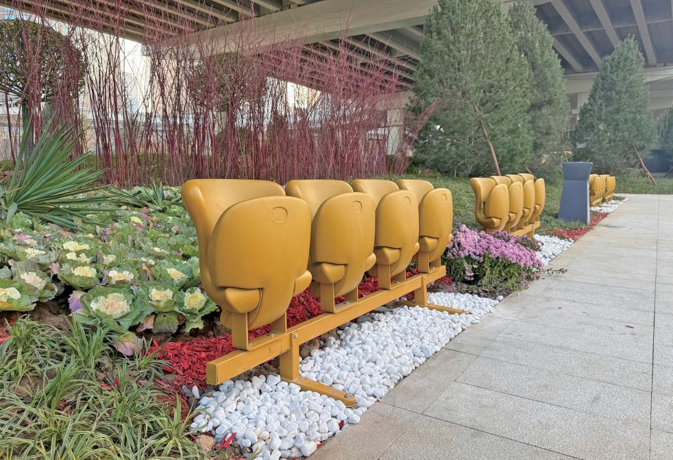 国贸桥下“漫行廊道”使用了今年九三阅兵时天安门广场的金色观礼座椅。