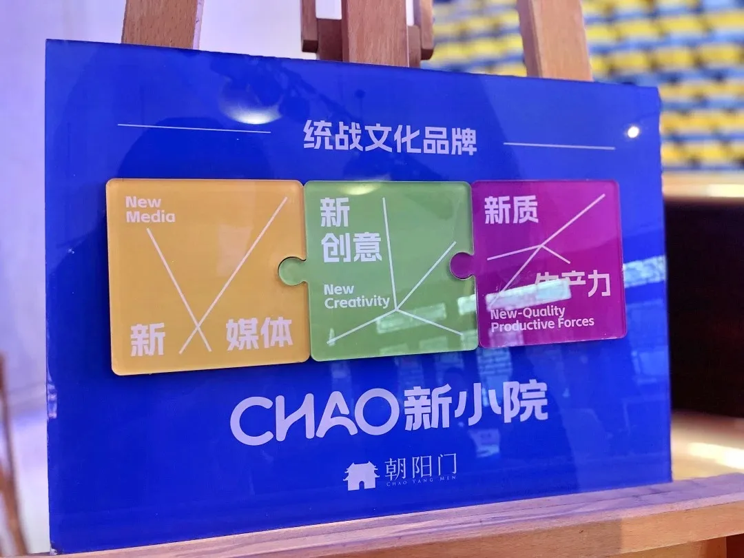 “CHAO新小院”的诞生,源于对新的社会阶层人士统战工作的深化探索,依托27院儿兼具老北京文化底蕴与开放包容氛围的独特优势,实现地域属性与时代特质的深度融合。“CHAO”字既呼应“朝阳门”的地域根基,强化归属感,又彰显“潮流潮头”的创新特质,契合新兴领域发展趋势,更寓意为新阶层人士打造“归巢”般的温暖港湾,凝聚群体力量。