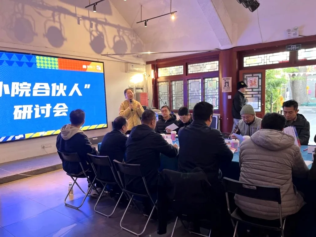 启动仪式上,视频博主安岩、北京三六零智领科技有限公司销售总监张攀、27院儿主理人牛瑞雪3位“三新”领域发起人,通过拼图互动完成品牌启幕,象征着不同领域人才的携手聚力。现场设置的体验环节中,嘉宾们沉浸式参观《老照片展览——北京拾光·东四南底片》,感受时光沉淀的文化魅力。同时亲身体验星焱灵犀(杭州)科技有限公司带来的智能触觉手套,直观感受“文化+科技”的创新融合活力。此外,在“小院合伙人”研讨会上,14位嘉宾各抒己见,为打造新媒体创作沙龙、创意项目路演、技术分享会等特色活动建言献策。