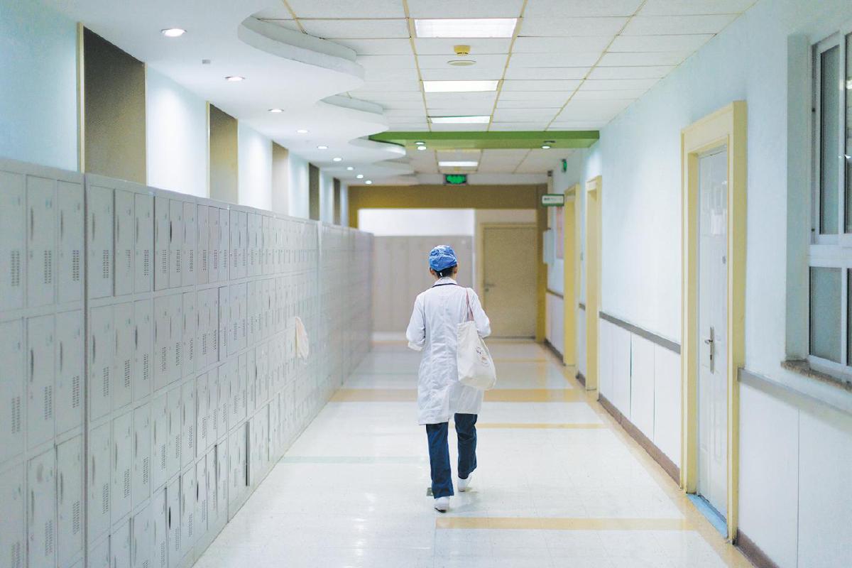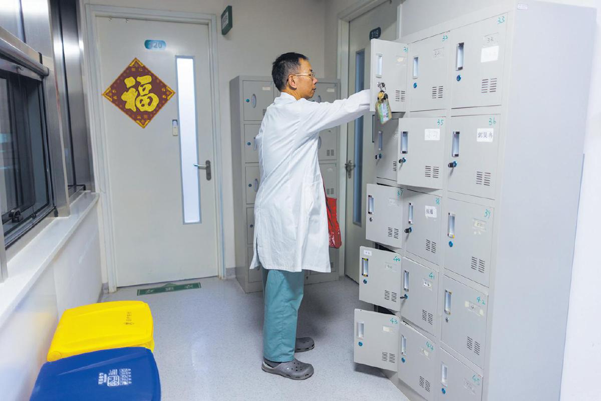 11月30日下午6时35分,按门诊动态支援机制,曾健生更衣准备前往门诊支援。