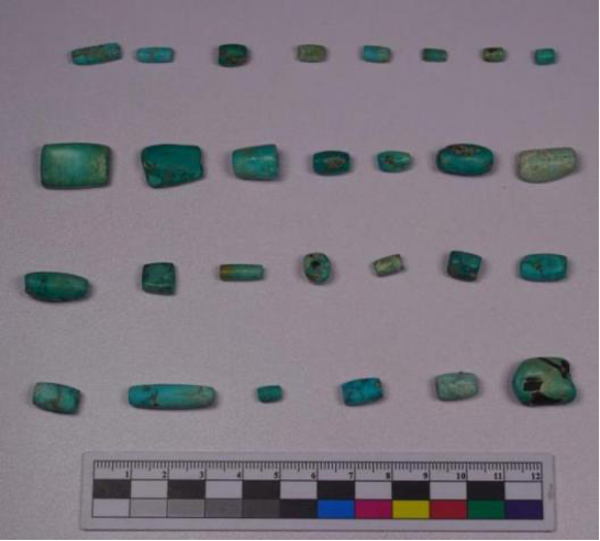 “我们综合探讨了它们的材料属性、工艺特征与潜在来源。”该院研究馆员杨菊介绍,团队先在现场应用便携式X射线荧光光谱、光纤反射光谱等,快速获取绿松石的成分与颜色信息等;到实验室后,结合光学显微镜与扫描电镜,观察其表面特征和加工痕迹,识别出旋转钻孔等复杂工艺痕迹。“这说明古人已掌握了较高水平的珠饰制作技术。”