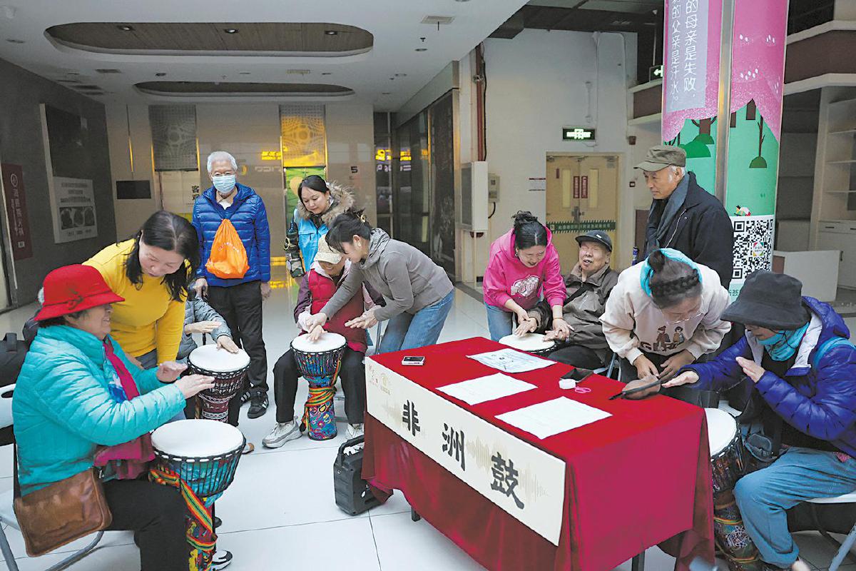11月14日,万达影城(望京店),视障朋友们体验非洲鼓。