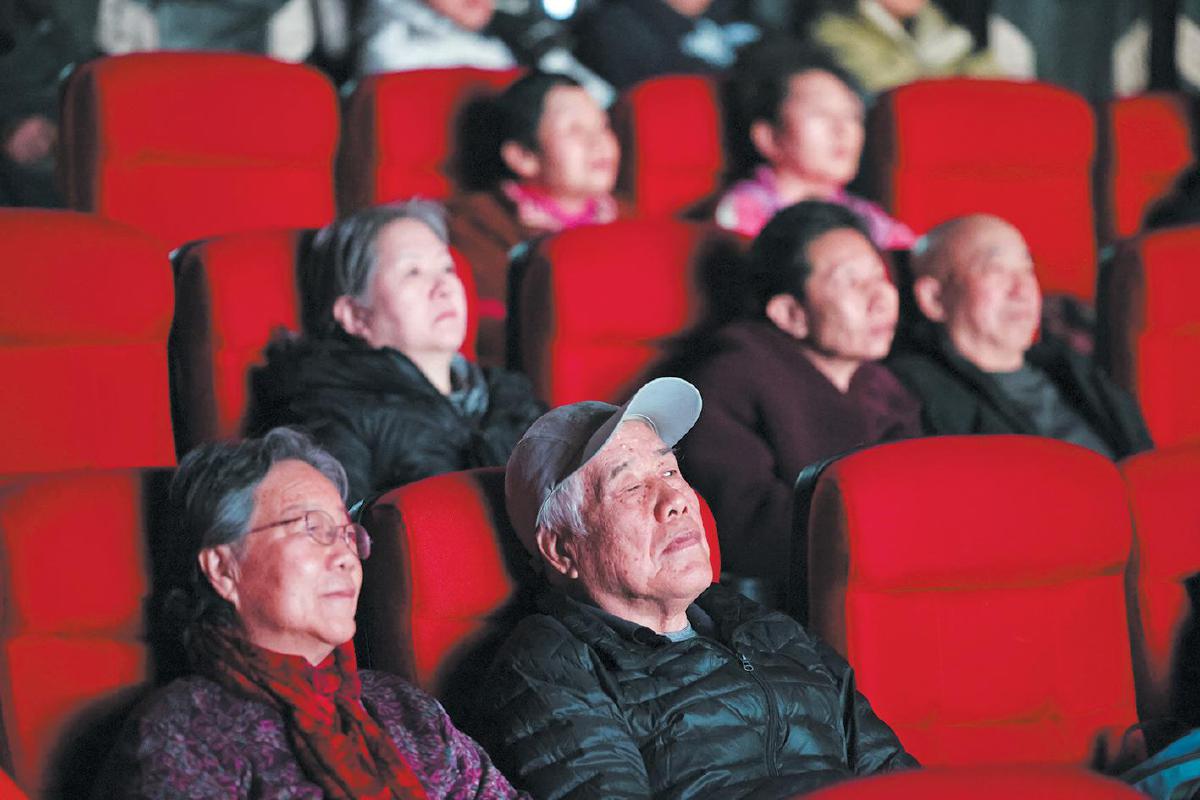 12月1日,万达影城(望京店),黄新民和老伴儿坐在影院内观看电影。新京报记者 王飞 摄