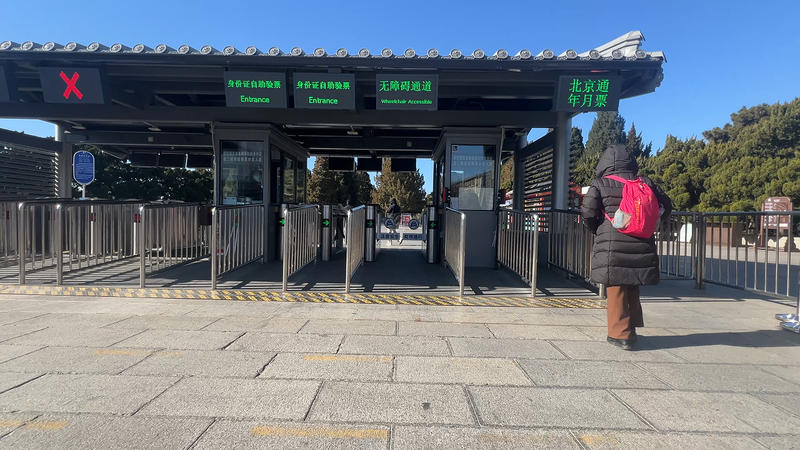 天坛公园东门,无障碍通道设置了更宽的闸口,方便轮椅直接通行。新京报记者 刘婧瑜 摄