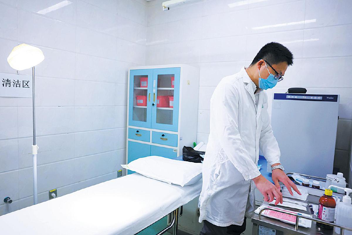 12月5日,北京回龙观医院,北京首例“戒酒芯片”植入手术,医生将缓释型盐酸纳曲酮药片植入患者皮下脂肪层。摄影/新京报记者 薛珺