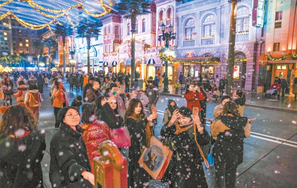 环球度假区里游客络绎不绝。北京日报记者 武亦彬摄