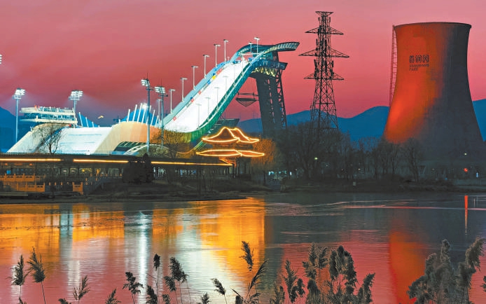夕阳下的首钢滑雪大跳台“雪飞天”。本报记者 刘平摄