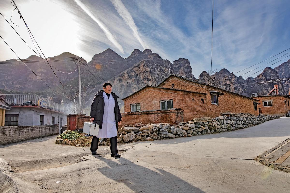 12月1日,北京房山区十渡镇平峪村,晋怀花提着药箱去村民家出诊。 本版摄影/新京报记者 王远征