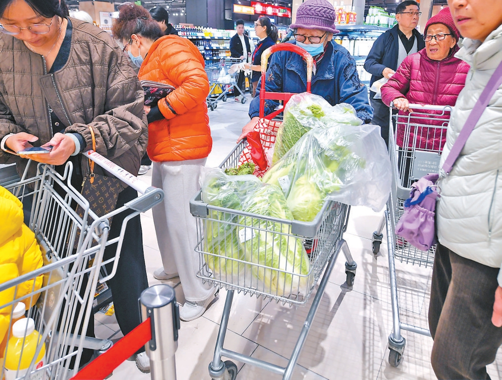 选购冬储菜的消费者等待结账