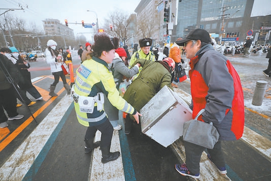 各大火车站地区,身着“旅客身边人”马甲的志愿者温暖着旅客。“这么冷的天,多亏了你们!”在清河站西广场,一位男子紧紧握住志愿者的手连连道谢。原来,他的父亲刚做完手术,眼看列车即将检票,志愿者迅速推来轮椅,与铁路工作人员接力开辟“绿色通道”,将老人平安送上车。