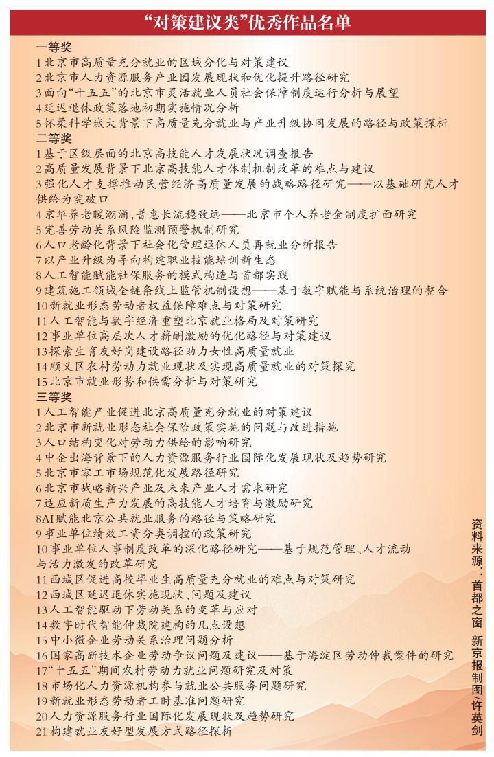 近日,北京市人力资源和社会保障局举办的“智汇人社‘十五五’共谱发展新篇章”主题征文活动评选结果揭晓。经严格评选,共有59篇优秀作品从360篇稿件中脱颖而出,分获一、二、三等奖及“金点子”意见建议。