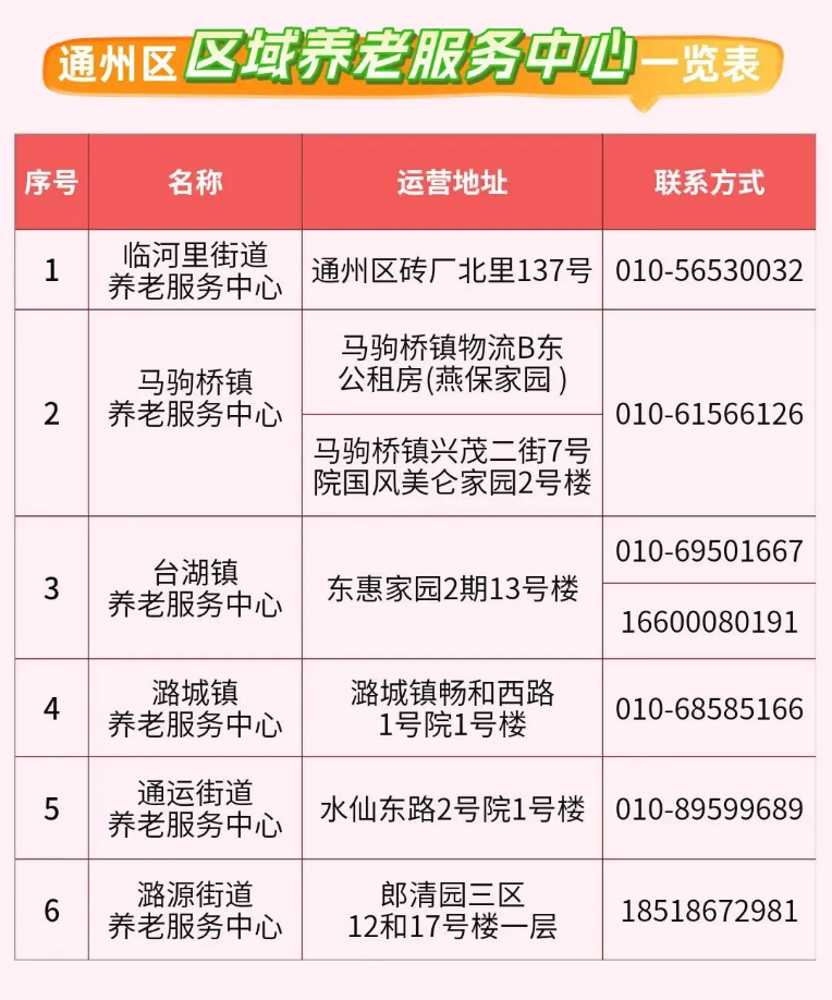 ■ 通州区区域养老服务中心一览表