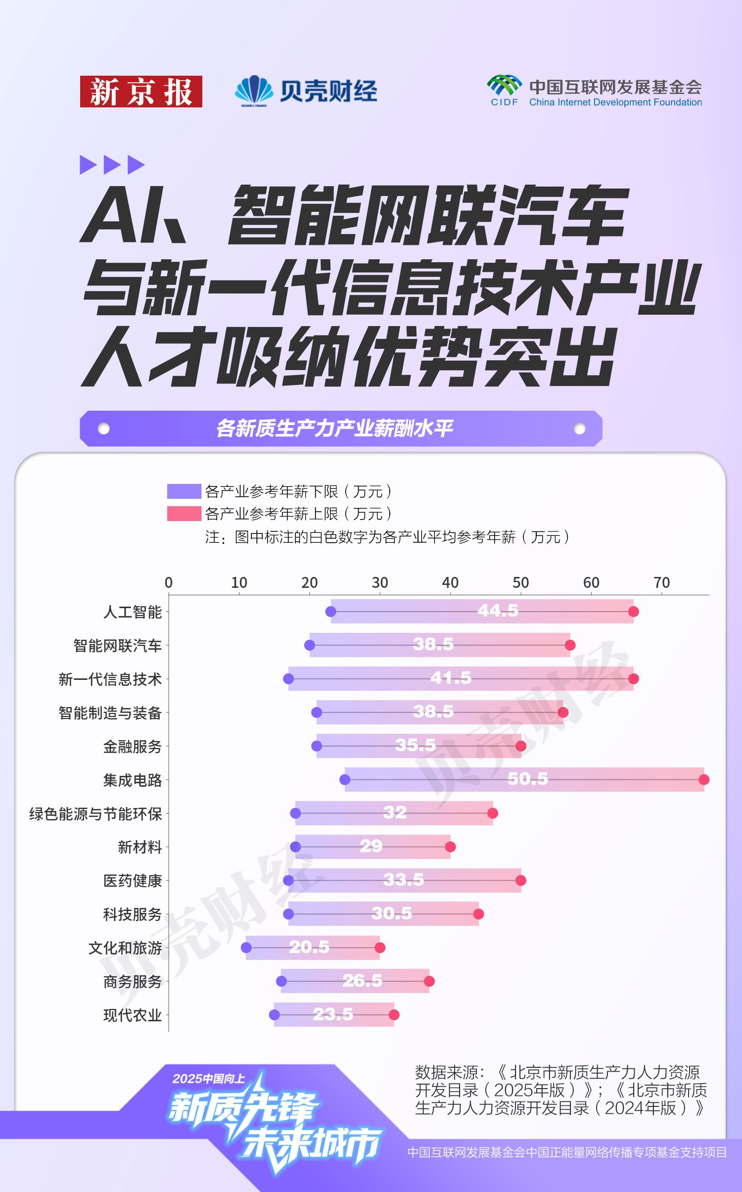 哪些快速增长的重点领域最缺人才?新京报贝壳财经记者全面梳理这份目录,透视北京新质生产力发展的人才密码:作为“创新大脑”的海淀和企业数量最多的朝阳,共同构成北京人才最密集、需求紧迫的两大新质生产力核心区;同时,北京人才市场资源进一步向关键环节、尖端人才倾斜,岗位招聘信息越发精准聚焦。而人工智能赛道的人才需求则走向多元化发展,从前端研发延伸至产品、用户体验、商业化链路等下游环节,“AI+”正在成为跨行业的共同语言,也向更多社科与交叉专业敞开了大门。