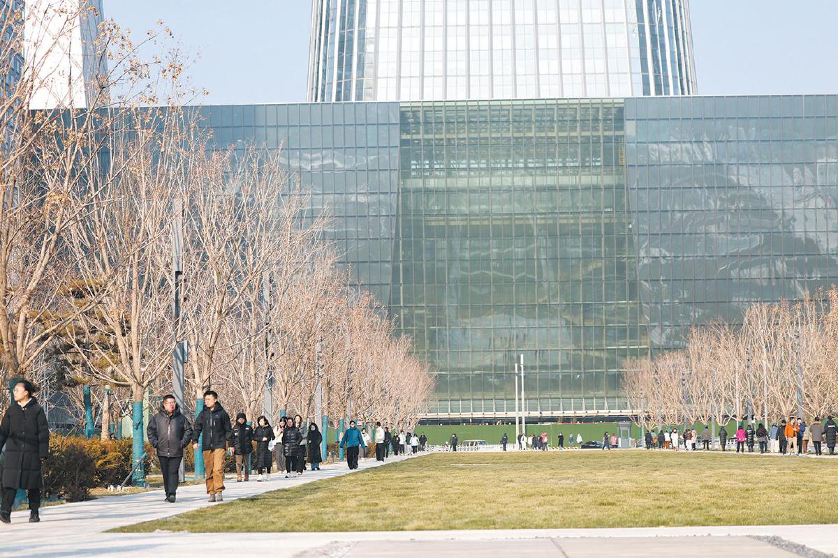 12月17日中午时分,三三两两的上班族在此散步。李女士和同事午饭后一起在这里遛弯,她说:“我们公司在这里四五年了,以前真没有特别留意过这儿。最近广场打开围挡,我们开始习惯了趁着午休过来逛逛,景色不错,视野也开阔。”