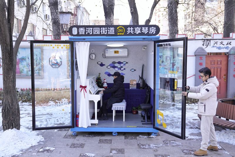 12月17日,朝阳区香河园街道西坝河中里社区,居民崔女士打开自己已经预约好的“共享琴房”。这款“音乐房车”式琴房自2024年10月投用后,已从单一的练钢琴空间,升级为适配吉他、唢呐、小提琴等的“全能练乐空间”,支持24小时预约。