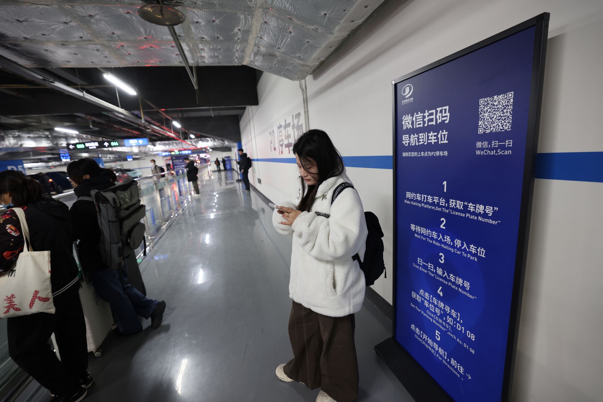 乘坐网约车的旅客通过微信扫码可以直接导航到车位。新京报记者 王贵彬 摄