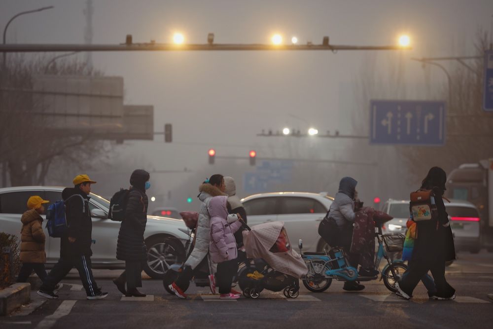 12月18日,大兴区天宫院,大雾中家长和孩子走过人行横道。北京市气象台18日9时发布:今天白天多云间晴,上午有雾或轻雾,北转南风一二级,最高气温4℃;夜间多云转阴(山区有雨夹雪或小雪),伴有轻雾,南转北风一级,最低气温-3℃。大雾黄色预警中,今天有雾或轻雾,能见度较差,出行注意交通安全。