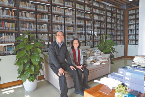 陈平原、夏晓虹夫妇在“陈夏书房”合影。记者 崔家宁摄