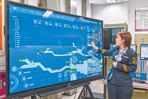 近日,记者走进10号线双井站综控室,只见屏幕上展现出双井站三维地图,系统会自动统计站内客流人数、出入口人数、换乘人数,还会自动进行大客流预警。一旦出现客流积压,地图上的颜色会自动变深。