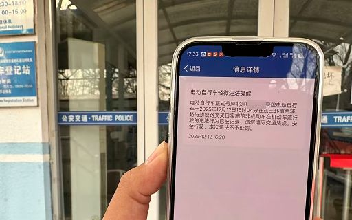 人在国外度假,但自己名下没人骑的电动自行车却在北京街头闯了红灯——近日,市民李珂珂(化名)收到一条交通违法提醒。短信显示,违法车辆挂的正是她登记在自己名下的号牌。