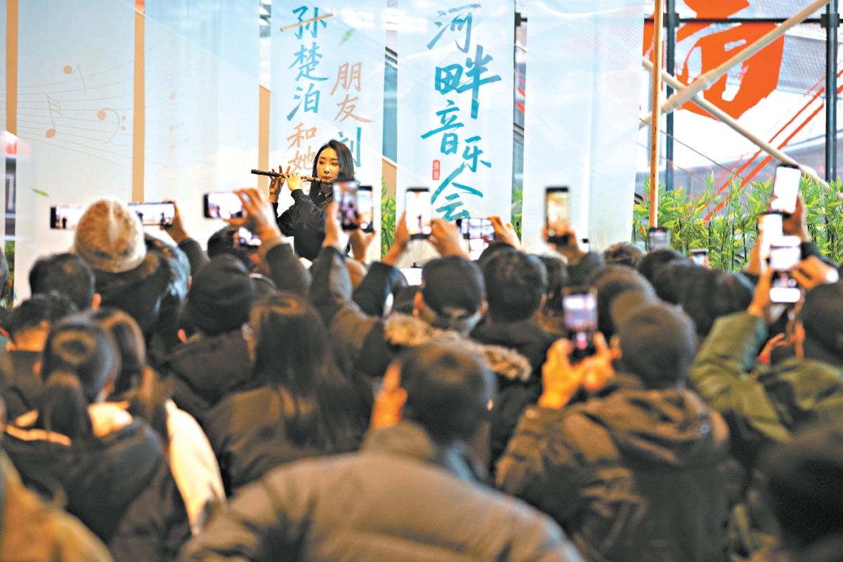 看场景,城市副中心特色场景不断扩容。5月开街的运河西岸,其特色小店吸引大批市民前来,龙舟嘉年华、2025运河文化时尚大赏等活动在此“破圈”。坐落于大运河畔的副中心三大文化设施(北京艺术中心、北京城市图书馆、北京大运河博物馆)自2023年底对公众开放以来,热度持续攀升。“看·见殷商”特展,北京大运河音乐节、孙楚泊的笛声吹响副中心……一个又一个的大流量在此聚集。